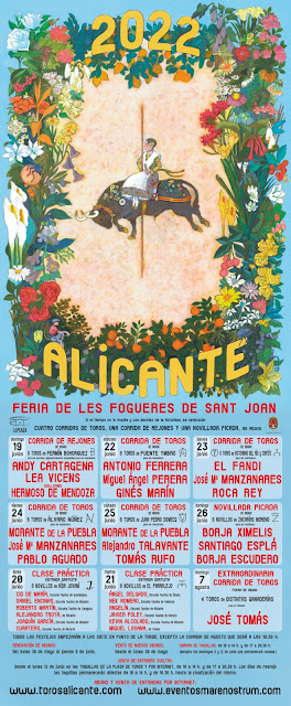Todos los festejos de la Feria de Hogueras comenzarán a las 19:00 h. La corrida extraordinaria del día 7 de agosto, comenzará a las 19:30 h.